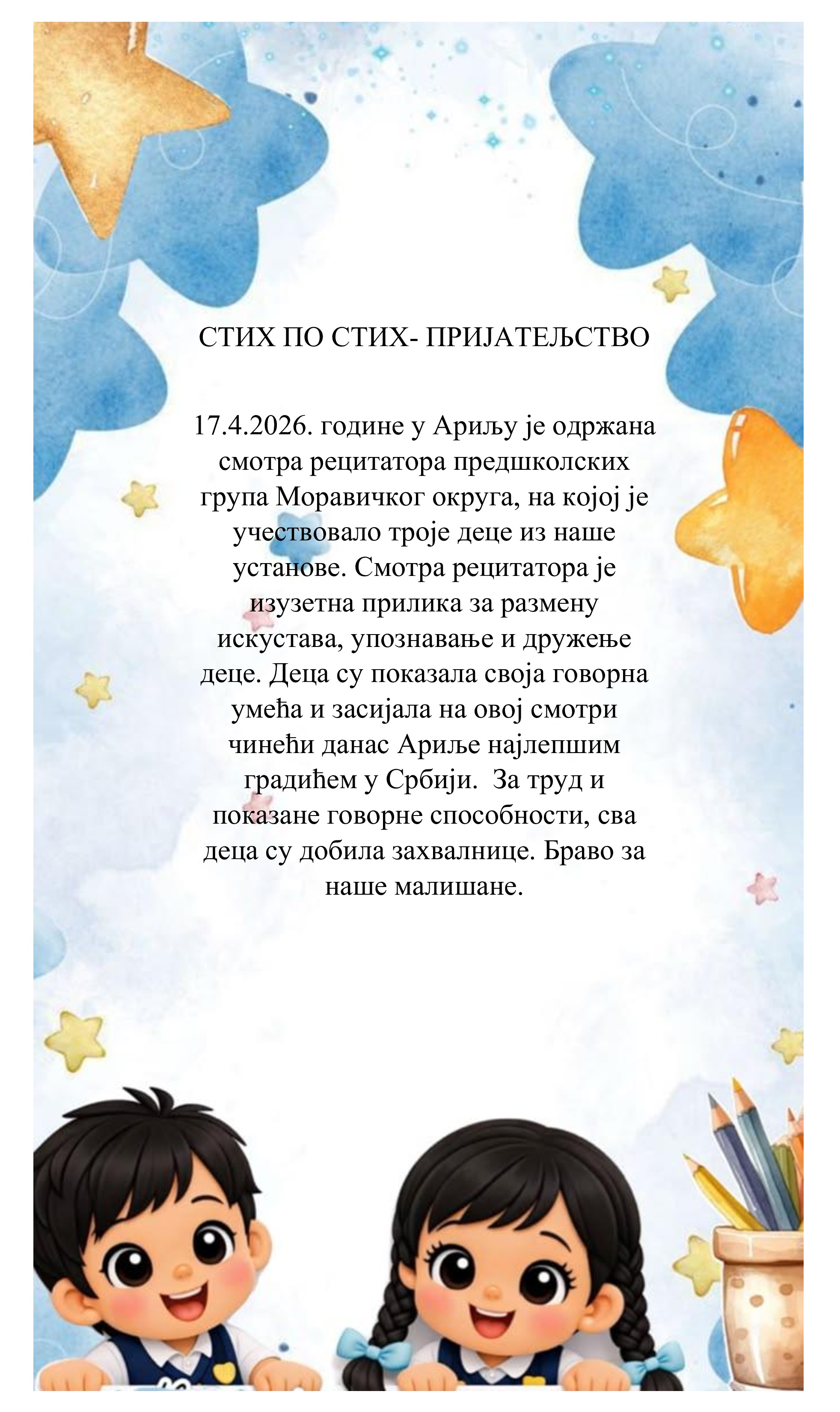 Предшколска установа "Наша радост" Tel/fax: 032 817 339 Tel/fax: 032 819 494 E-mail: vrticlucani@mts.rs E-mail: nasaradostlucani@gmail.com Web: www.vrticlucani.edu.rs